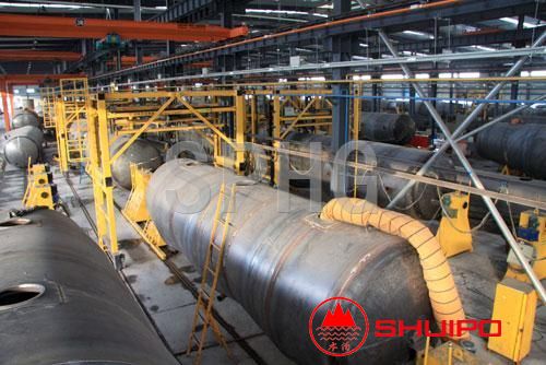 罐體生產(chǎn)線從鋼板下料、板材銑邊、板材對接、卷筒、整形、組裝、焊接、成型等先進(jìn)的制造工藝和各工序自動化制造裝備;開發(fā)一套遠(yuǎn)程集中控制系統(tǒng),實現(xiàn)制造工藝編制、生產(chǎn)設(shè)計安排、生產(chǎn)過程監(jiān)控管理等一體化控制。